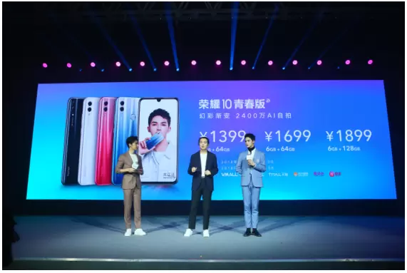 2018年11月21日,“幻彩渐变 2400万AI自拍”的荣耀10青春版新品发布会在北京盛大开幕。作为荣耀10系列新成员,荣耀10青春版凭借渐变色潮流设计及2400万AI自拍、强劲性能横空出世,带来旗舰级的超值体验。发布会当天,颜值与实力兼具的新生派歌手、演员朱正廷担任“荣耀手机青春大使”出席现场,全力助阵荣耀10青春版。