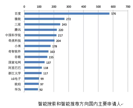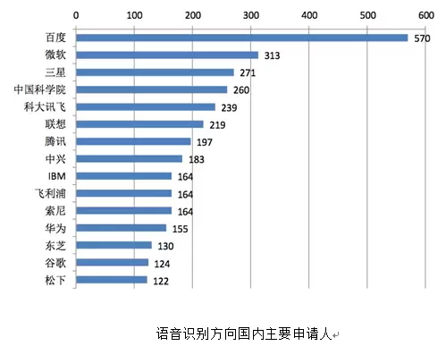报告显示,国内专利申请量排名中,百度第一、腾讯第四,阿里巴巴居第十位。在语音识别领域排名中,百度以570件技术申请量实力碾压197件申请量的腾讯;在智能搜索和智能推荐领域,百度以576件技术申请量遥遥领先,是腾讯申请量的两倍,是阿里巴巴申请量的四倍有余。