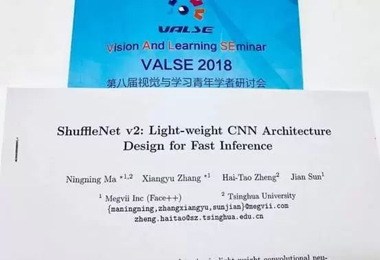 讲台之外,旷视的展台也不容忽视,学术分享的精彩程度与讲台之上俞刚博士的分享相得益彰。在旷视展区,旷视资深研究员张祥雨(2016 CVPR最佳论文ResNet作者之一)首次公开了独家干货ShuffleNet v2论文并亲自解读答疑,成为全场最受关注的焦点。ShuffleNet v2可谓是VALSE surprise,下面就扼要地为没有机会到现场的小伙伴们分享一下旷视研究院ShuffleNet v2的工作思想。