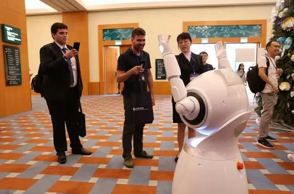 智能云平台商用服务机器人Cruzr(克鲁泽)在大会签到处担任迎宾机器人,用英文欢迎全球参会嘉宾:“Welcome to ICDM 2018, have a nice day! (欢迎您参加ICDM 2018,祝您度过愉快的一天!)”,提供大会服务信息和充满科技感的娱乐互动体验,用暖心服务赢得了参会嘉宾的赞扬。