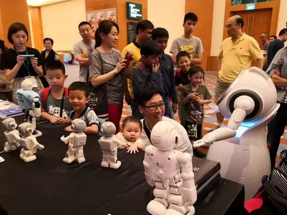 优必选便携式智能机器人悟空吸引了众多参会嘉宾及新加坡游客的目光,极富表现力的悟空通过灵活的舞蹈、打功夫、俯卧撑等表演,智能语音交互、视觉识别等AI能力吸引观众主动互动,Alpha Ebot则凭借一口流利的英语,与国外参会嘉宾互动,施展人工智能的魅力。