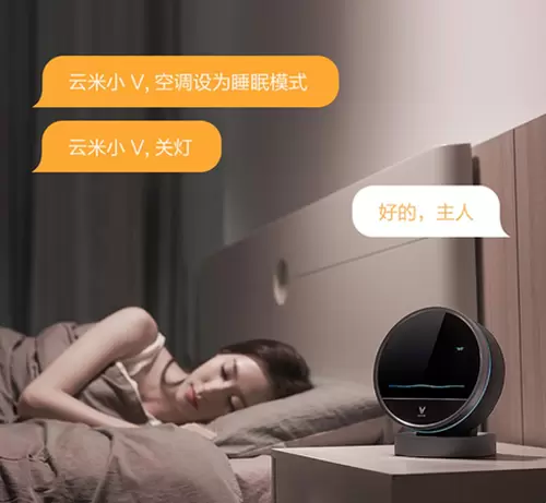 比如说,在睡觉前你已经躺在床上,但是又不想爬起来希望关灯、关空调,就只需要跟云米小V说一声“云米小V,关灯,把空调设为睡眠模式”即可。