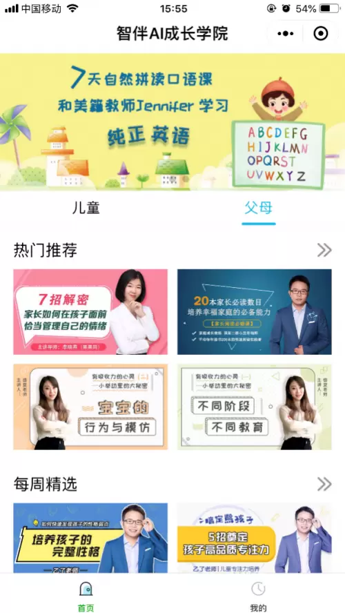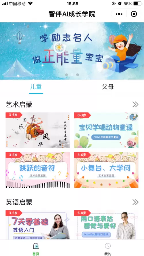 不同于常规的早教App只提供适用于孩子或者适用于家长的课程内容,智伴AI成长学院同时设计了儿童、父母两个课程入口,同时匹配不同角色下的定制课程。家长们在小程序里既可以学到蒙特梭利教育法、高情商父母养成法、早期性教育启蒙、儿童时间管理等有针对性的早教课程,也可以了解宝宝常见病、儿童育儿百科等实用性很强的育儿方法,拿起手机就能看,充分利用日常带娃的碎片时间。