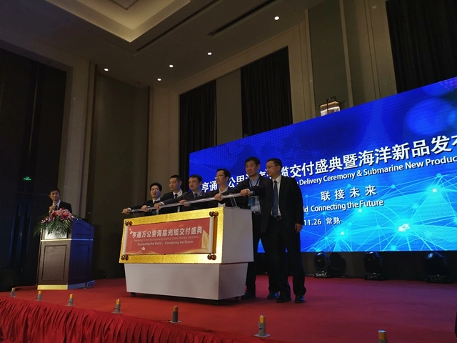 “亨通万公里海底光缆交付盛典暨海洋新品发布会”今日在常熟举行,来自常熟市政府领导、科研院所、知名高校、海缆系统集成商等120余位嘉宾参加了庆典仪式。亨通海洋在发布会上向社会各界展示了亨通布局智慧海洋产业、海底观测领域以及海缆投资、运营维护等新领域的未来发展方向。