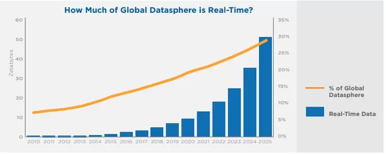 据IDC称,到2025年将近30%的数据将是实时数据