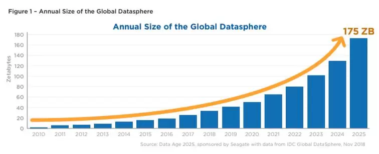 总而言之,在2025年全球将连接的1500亿台设备中,大多数将创建实时数据,IDC表示。预计全球数据领域将从2017年的23 Zettabytes(ZB)增长到2025年的175 ZB。一个zettabyte相当于万亿千兆字节。