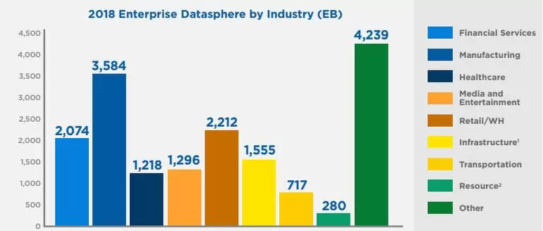特别是四个行业 - 金融服务,制造业,医疗保健,媒体和娱乐 - 目前占“企业数据领域”的48%,其中制造业占据最大份额。