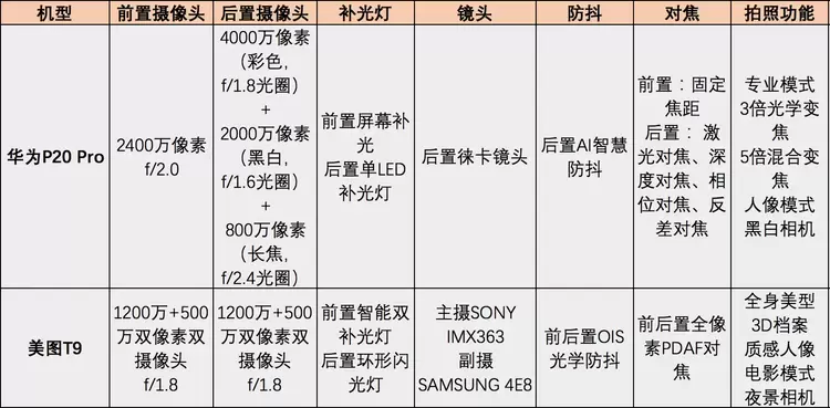 美图T9完全是一款被自拍耽误了的拍照手机,用户都把注意力放在它的自拍美颜上了,其实美图T9拍摄的照片在清晰度、细节、色彩等方面与华为P20 Pro还是旗鼓相当的。就个人而言,我会更喜欢美图的人像拍照效果,画面比较柔和,整体颜色不过分白也不会过分黄,美颜即精致又自然,拍阿猫阿狗也非常合适;那如果是拍食物、风景这些,华为P20 Pro的细节处理得比较好,色彩更讨用户喜欢,自拍嘛也能满足轻度需求吧,整体来说两款手机拍照水准都在线,我觉得都值得入手,看预算看侧重需求吧。