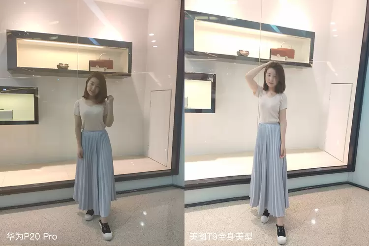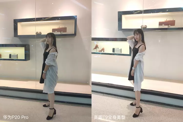 感觉美图T9全身美型这个功能才是王者段位,真的可以瘦脸、瘦腰、瘦腿…还可以自动调整全身的比例…为了讨好女生,美图真是很走心啦!虽然华为P20 Pro在人像表现上输了,不过曝光控制方面还是比美图T9好,逆光也不会有过曝的情况出现。P.S:两位小姐姐拍完都表示美图手机太强大!