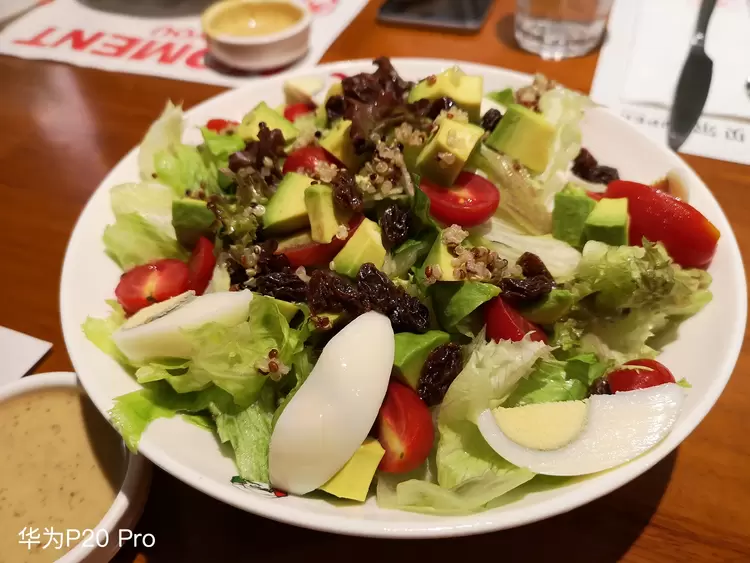 华为P20 Pro还有一个美食拍照模式,也是在你拍食物的时候系统就会自动识别并跳转至美食模式,这个模式的色彩饱和度也非常高,所以拍出的沙拉视觉效果就很讨喜;那美图T9就基本还原了它实际的色彩色调,比较暗淡。