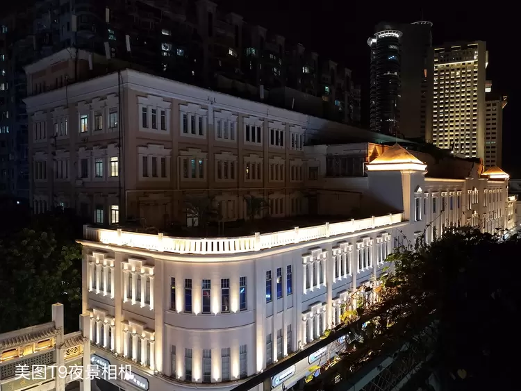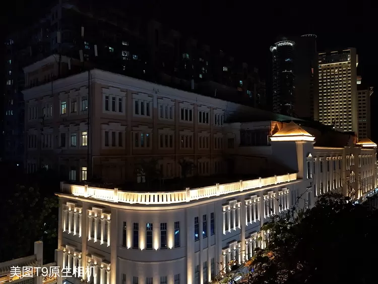 华为P20 Pro夜景拍摄效果还是比较出色的,尤其是专业拍照的手动模式绝对Slay全场,会玩的用户是有机会拍出夜景大片的;虽然美图T9在美图云相机应用中可以选择夜景相机拍摄,但它的拍摄效果比相较原生相机的夜景拍摄差别不大,好在曝光度与对比对可以得到一定提升。