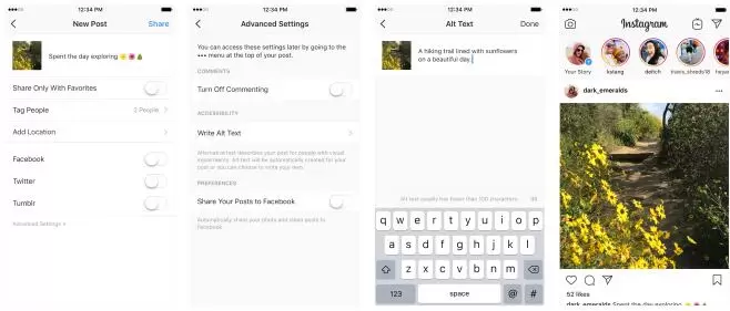 这些描述将针对使用屏幕阅读器的用户。当用户发布照片时,用户输入的替代文本选项将在高级设置中弹出。它肯定有点偏僻,但它现在存在,所以这是一些东西。虽然只有来自人类书面视觉描述的深度,但公司使用其对象识别软件显然会在Feed,Explore和Profile部分中对项目执行大部分文本描述。