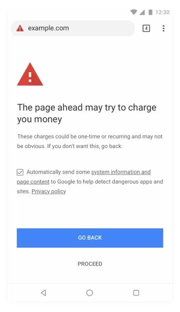 其次,从Chrome 71开始,谷歌还宣布打算打击那些使用阴暗技巧欺骗用户订阅移动订阅计划的网站。