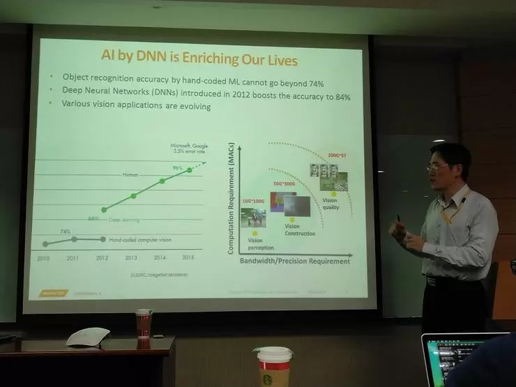 沟通会上,吴骅先是对AI的兴起以及在手机上的应用进行了一定的介绍。他将AI定义为“教导机器做的像人类一样好甚至超越人类”的技术,希望机器最终可以达到自我思考和反应的水平,例如让自驾车不仅能看懂红绿灯,还能看懂斑马线并学会让车。
