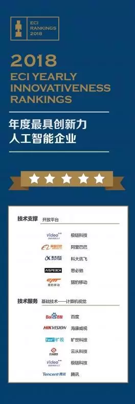 创新力榜单发布作为贯穿本届ECI Festival 国际数字商业创新节的重要环节,主要针对人工智能、大健康、区块链、新零售、媒体、营销机构、超级IP、小程序、在线教育、品牌10个垂直领域进行企业创新力排名及行业趋势解读。极链科技Video++凭借AI创新大文娱产业的优质成果,荣登榜单并斩获「ECI年度最具创新力人工智能企业奖」。