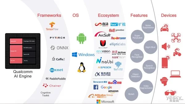 第四代Qualcomm人工智能引擎软件套件可以为Qualcomm神经处理器SDK、GoogleAndroidNN-API以及Hexagon NN和Qualcomm Math Library带来一系列的提升,实现对终端侧AI语音、拍摄、游戏和XR体验的支持。Qualcomm的软件生态系统新增的合作伙伴包括思必驰、AnyVision、科大讯飞、大象声科、Nalbi等。