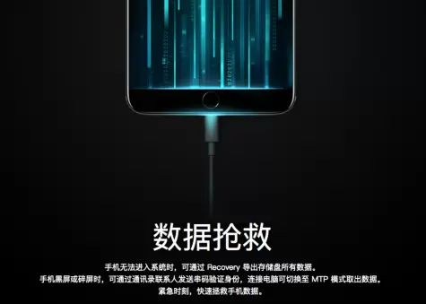 对此,Flyme 7提供了数据抢救功能。只需要一根数据线,将受损手机和电脑连接,让你通讯录中的任一联系人发送锁屏密码到受损手机,进行身份验证后,手机就会自动切换成U盘模式,即可顺利在电脑上取出受损手机里的数据。