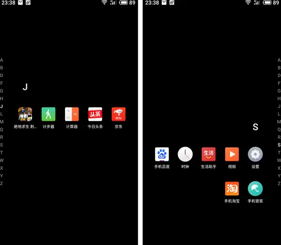 这个有趣实用的创新交互功能可以让我们快速找到相应的应用,不用一屏一屏来回寻找。具体操作很简单,在桌面任意一屏上,在屏幕左右两侧边缘均可以通过上下滑动呼出由应用首字母组成的索引字母,按字母可快速找到想开启的应用。并且AI引擎One Mind会根据你的使用习惯,把你常用的App放在离你手指最近的地方。