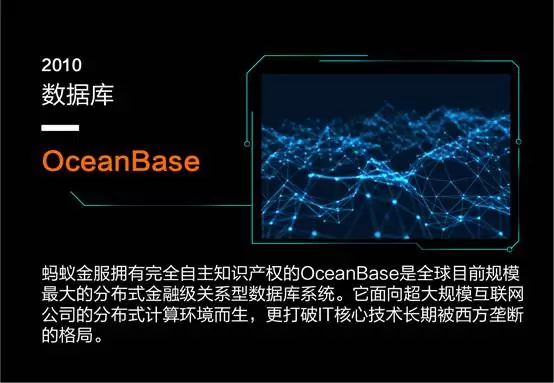 蚂蚁金服旗下拥有完全自主知识产权的OceanBase,这是全球目前规模最大的分布式金融级关系型数据库系统。它面向超大规模互联网公司的分布式计算环境而生,打破了IT核心技术长期被西方垄断的格局。