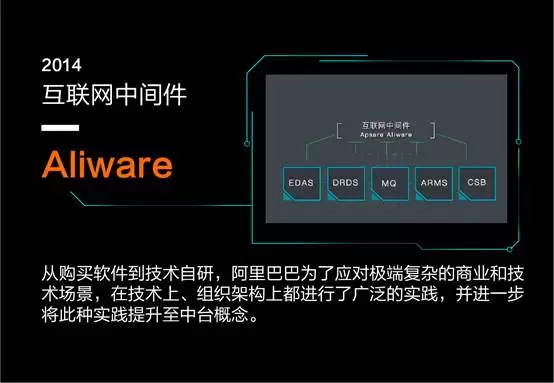 为应对互联网极端复杂的商业和技术场景,阿里巴巴自主研发了互联网中间件Aliware系列产品,用互联网的架构方式来构建强大的业务和数据中台,让一线前台有“空军”支持,整合企业的数据能力和产品技术能力,构建“大中台、小前台”,一切业务数据化,一切数据业务化,全面驱动企业数字化转型。
