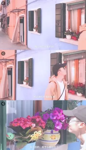 在苑子文的10秒电影中,他一个人走在充满欧洲风情的街道,镜头随着他的视角移动不断变换。红漆门,木雕窗,舒缓的吉他声远远传来,白T恤橘外套的苑子文沿着老街走来,似在寻找、回忆着什么。电影最后的画面定格在窗台的两盆鲜花上,苑子文低沉醇厚的声音响起:“我记得你所有的好,也记得你所有的不好,关于你的,我怎么都忘不了!”