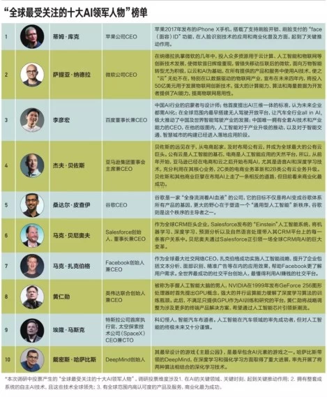 “全球最受关注的十大AI领军人物”新鲜出炉 李彦宏成唯一上榜中国人