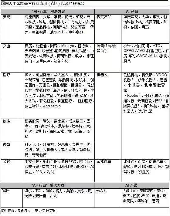 因而,“AI+”将是国内AI发展的主旋律,“政策、技术、需求”将共同推动该战略深化和落地。预计到2020 年,我国AI核心产业的市场规模将超过1600亿元,而融合发展带来的相关产业市场规模将超过万亿元。但平安证券指出,国内的发展还是侧重于AI产品,而在与传统制造业和服务业融合领域,尚处在试水阶段。