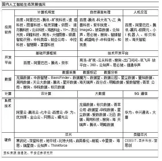 而国内AI要实现突破性发展,还需要解决若干问题。平安证券分析指出,一是我国在芯片领域的研发还相当薄弱,在 GPU、NPU 以及芯片模块等领域还需不断发力,提高自主可控能力;二是平台建设方面存在较大差距,AI的发展离不开平台和生态的建设,Google、IBM等巨头在这方面的投入巨大,已形成了TensorFlow、Caffe、CNTK 等开源深度计算技术平台,并吸引了大量的开发人员进行模型的学习和训练,国内虽然有一些类似平台,但差距依然较为明显;三是国内在人才体系建设和培养方面缺口也较大,国内在该领域的教育和培训积累较少,人才不足的问题也在制约着AI向行业渗透。