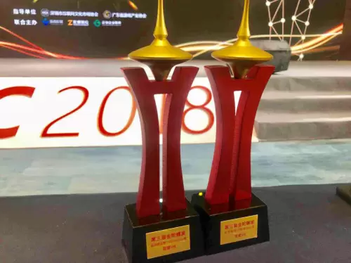 百度VR“年度最佳VR教育企业奖”和“年度最具商业潜力VR/AR企业奖”奖杯