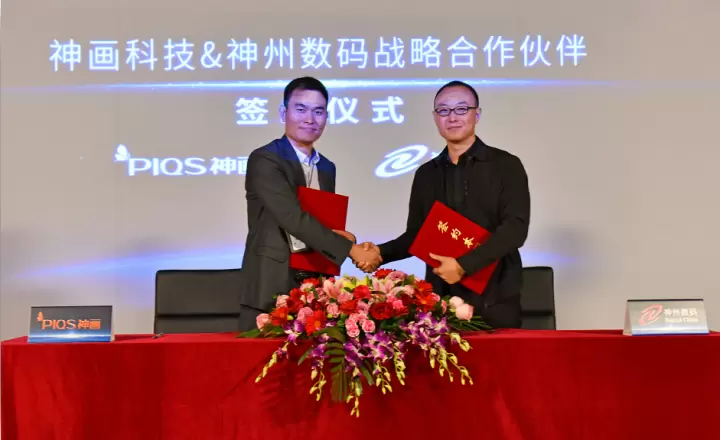 神画科技大客户销售部高级总监单长忠先生与神州数码显示设备部产品总监李昆依先生签署战略合作协议。