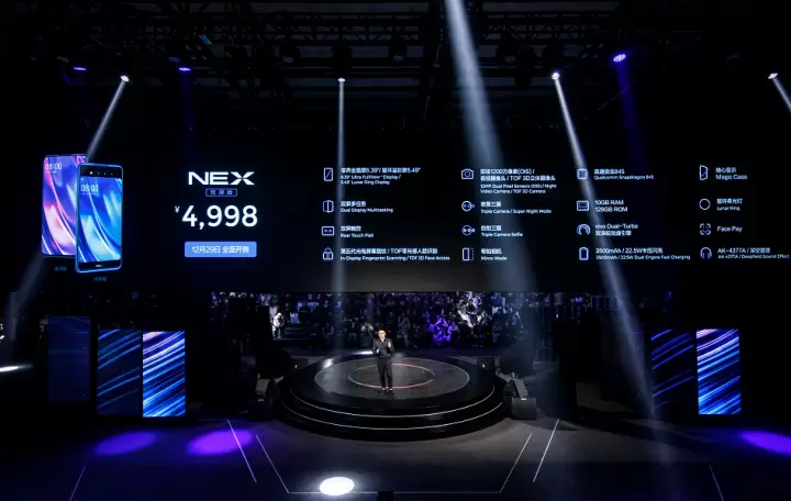 发布会现场最后,vivo公布了最新一代旗舰新品价格,为给用户最极致的未来体验,此次发布的NEX双屏版采用行业顶级高配,官方统一定价人民币4998元。