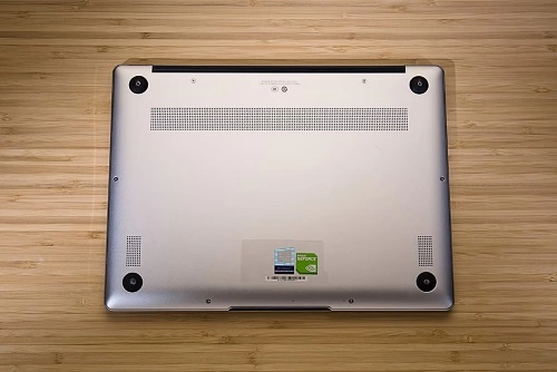 HUAWEI MateBook 13的D面四角放置了四个胶垫,以此来防滑防刮擦,当然,由于HUAWEI MateBook 13的扬声器也设计在底部,所以这四个胶垫同样具有着增高作用,从而让声音能够更好地展现。