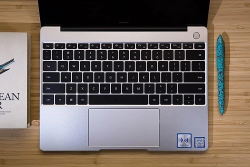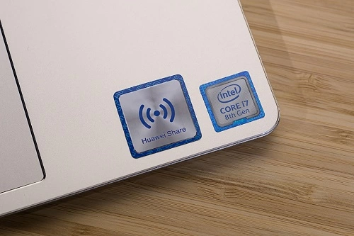 在HUAWEI MateBook 13的C面,键盘和触摸板占据了绝大部分区域,在键盘和触摸板之外,HUAWEI MateBook 13的右上角还设计有一颗指纹式电源键,顾名思义,HUAWEI MateBook 13支持指纹识别功能,并且用户在使用时可以通过指纹一键实现开机、登陆,无需进入登陆界面再验证指纹,这明显是一种为用户考虑的交互方式,既安全有充满人性化,不过需要提醒大家的是,不要因为长期使用指纹而忘记了传统密码。本次HUAWEI MateBook 13的C面除了常规的处理器标签之外,还新增了一个“HUAWEI Share”的标签,通过该标签所示位置,用户可以完成神奇的“跨界传输”。
