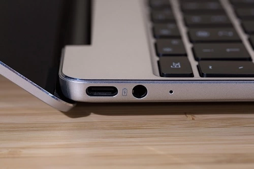 除了散热,轻薄本的接口也是备受关注。在接口方面,HUAWEI MateBook 13左侧拥有一个USB-C接口(数据和充电)和一个3.5mm耳机接口,而右侧同样拥有一个USB-C接口(支持数据和DisplayPort)。如果用户觉得接口不够的话,可以从右侧的USB-C接口接入拓展坞,这样使用起来就会更加方便。