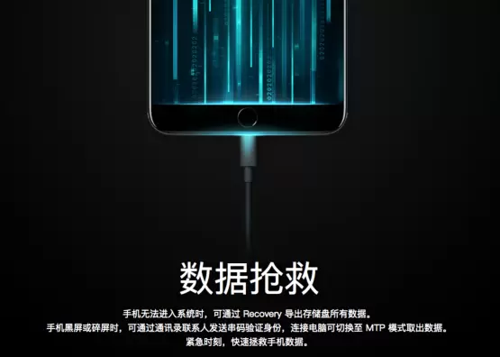 考虑手机受损导致黑屏或碎屏不能显示时,手机里的资料很难取出,让人既担心信息资料的安全,又感到很着急,Flyme 7加入了数据抢救功能。你只需要一根数据线,将受损手机和电脑连接,让你通讯录中的任一联系人发送锁屏密码到受损手机进行身份验证。手机就会自动切换成 U 盘模式,即可顺利在电脑上取出受损手机里的数据,安全又便利。