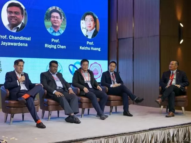 在圆桌论坛环节,克里斯蒂安·普罗布斯特教授、察安迪卯·贾亚瓦尔德纳教授、陈日清教授,黄开竹教授与主持人香港中文大学教授,工程学院副院长金国庆一起探讨了目前人工智能与网络安全教育的现状以及所面临的挑战。
