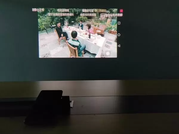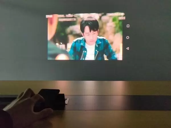 关灯后对准白墙壁投出图像,投影实际非常清晰,并且在熄灭屏幕后,手指放到屏幕上还能出现鼠标的样子,这对投影文档然后讲解特别有用整个手机投影的亮度非常不错,MEMS激光投影随时随地都能在一面墙上投影想要的画面,我可以随意摆放位置,调整画面的大小。即使是在拐角的位置也能清晰得到图像。基本上就是放进口袋的移动影院和办公神器。