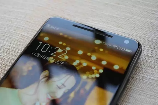 青橙VOGA 2正面采用一块5.99寸18:9的全面屏设计,整个手机的面十分简洁,屏幕显示区域并非硬生生的直角,而是带有圆角的过渡,撕开屏幕的保护膜,整个手机正面的玻璃很光滑,没有那种生涩的感觉。额头上方依次排列的是闪光灯,听筒,传感器以及前置摄像头。整个听筒不同于以往的手机,呈现长条状,可能与头顶的投影模组有关。整个额头上方采用对称设计,左右两边各一个圆形开孔,感光器则隐藏在屏幕玻璃下方。屏幕周围和金属质感边框接触的地方带有缓冲带包边,这样有利于跌落的时候减少对屏幕的伤害,整个屏幕也是采用了2.5D玻璃。