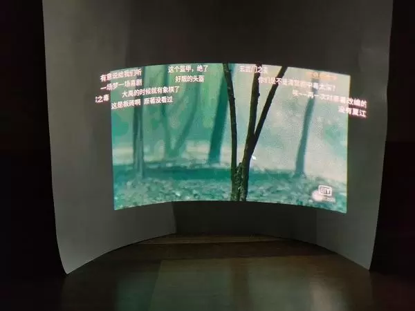 为了模拟曲面投影的效果,我使用一张白纸进行弯曲,当弯曲到一定角度后,再使用手机进行投影,发现图像显示依旧正常,丝毫没有画面缺失或者虚焦的迹象。