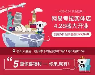 为庆祝“海淘爆品店”的开业和试运营,网易考拉海购还将带来五重惊喜活动,包括:从4月28日至5月1日的4天内,全场商品5折起。无论是Ora2皓乐齿亮白净色牙膏、考拉工厂店天然橡胶PU防滑瑜伽垫、MARMOT土拨鼠户外休闲速干短裤、THE NORTH FACE乐斯菲斯速干T恤等等,这些爆款商品统统5折起!4月28日消费者入店扫描官方微信二维码,将领取满399减60专属优惠券,享受折上折;4月28日,进店消费送考拉玩偶,先到先得;4月28日至5月1日,店内下单即送520元线上优惠券大礼包;4月28日至5月1日,店内开黑卡赠100元实物礼包。