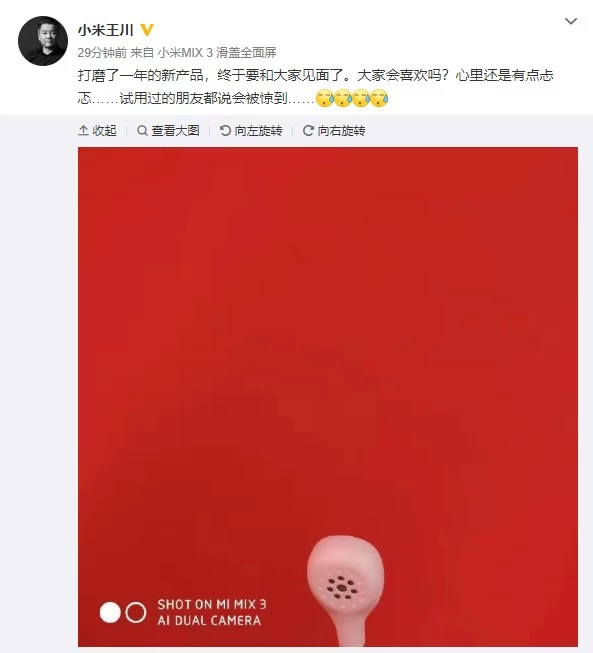 小米官方这一举动,不禁让人想起不久前王川在微博上自曝的那张小米新产品的图片。从外观上看,这款神秘产品的真身让人有些猜不透。结合今日王川的爆料,难不成小米会推出故宫版淋浴喷头?亦或是故宫版摄像头?