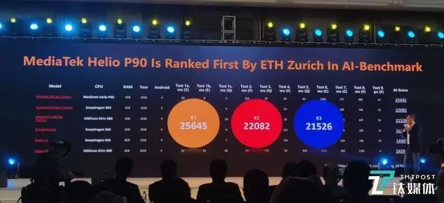 联发科对外公布了瑞士苏黎世 跑分关于手机AI能力的跑分数据排行,这是一个全球较为权威的跑分软体,对芯片的各项AI性能都有一个平行比较,其中Helio P90 位居第一,高通骁龙855和华为麒麟位列第二位和第三位。