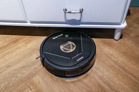 科沃斯地宝DD56上市之初便备受关注,是漫威系列人气产品。它整机黑色炫酷,正面的超级英雄钢铁侠量身定制的图腾栩栩如生。与此同时,科沃斯DD56还支持远程操控,随时随地开启智能清洁搭载蓝鲸清洁系统:微控水箱拥有300ML容积,单次加满水后即可满足一整间屋的清理。此外,扫地机器人的清洁拖布进行了升级,采用了恒压浮动抹布设计,可以让抹布更具弹性,从而能够紧贴地面,不仅可以擦除地面顽固污渍,也不会对拖地机器人的行动造成过多负担。