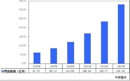 结合宏观经济形势以及行业发展趋势,预计2018-2023年人工智能机器人市场规模年均增速为40%。