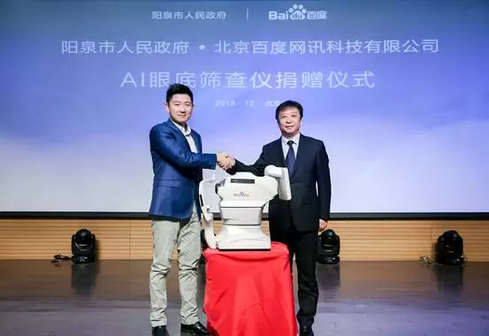 在AI城市建设上,双方将以百度大脑等百度核心技术为依托,加速以AI为代表的新一代信息技术在阳泉的交通、环保、城管、医疗、旅游、物流、工业制造等领域规模化融合应用,借此优化阳泉城市管理与公共服务效能,全面推进阳泉智能城市建设。百度还将协助阳泉市形成一批AI数据标注企业,带动一批AI解决方案企业落地阳泉,助力阳泉升级产业模式,加速智能化进程。现场,百度基金会副理事长周达代表百度,向阳泉捐赠了5台百度AI眼底筛查一体机,阳泉的医疗智能化建设就此开启。