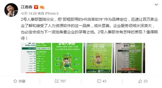 江南春点赞2号人事部引热议 企业服务领域孕育下一个独角兽
