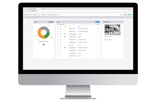 通过物联网网关CPX-IOT,可为Festo每个元件预配置用户界面,可实现额外个性定制。用户界面用浏览器查看,包括图表和流量灯。每种应用程序窗口各司其职,一目了然,包括用户界面组件和用于能耗监控和预防维护的图表,以及用于过程和整体设备有效性改善的关键绩效指标。