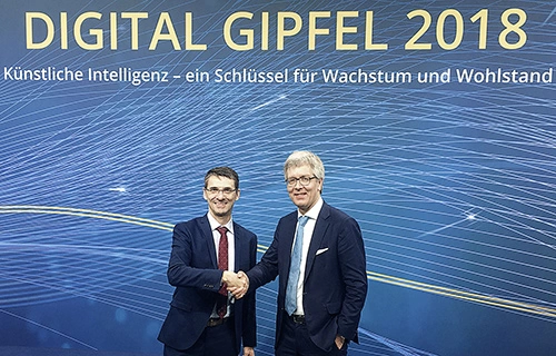 Festo管理董事会成员Frank Melzer博士(右)与SAP董事会成员Bernd Leukert(左)握手