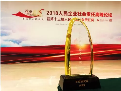 58集团精准扶贫助力乡村就业 获第十三届人民企业社会责任奖“年度扶贫奖”