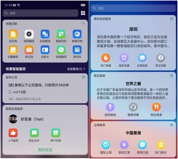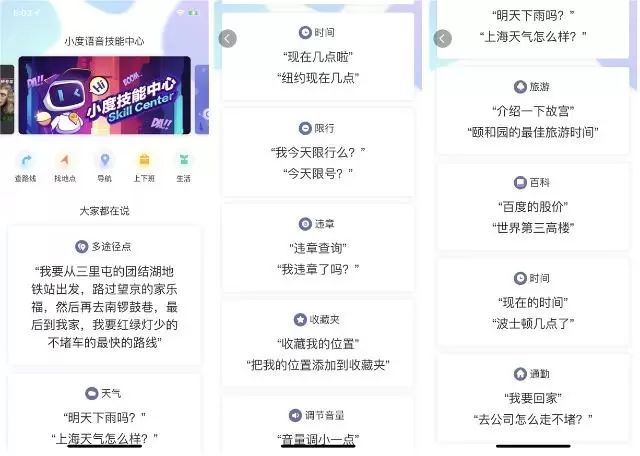 比如,在首页底部点击最右边按钮进入小度AI助手后,它会根据用户最新到达的地点,提供当地特色美食、游玩景点推荐、未来天气预报、目前道路拥堵情况等信息,帮助用户全方位了解、掌握当地出行、生活状况。